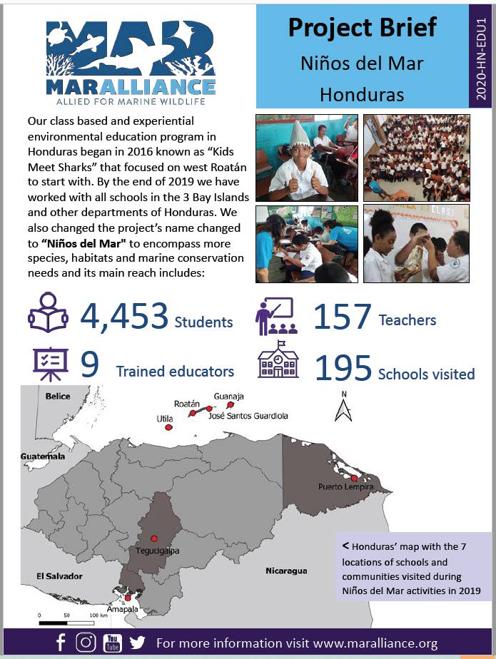 Our class based and experiential environmental education program in Honduras began in 2016 known as “Kids Meet Sharks” that focused on west Roatán to start