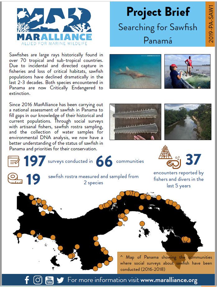 Sawfishes are large rays historically found in over 70 tropical and sub-tropical countries. Due to incidental and directed capture in fisheries and loss of critical