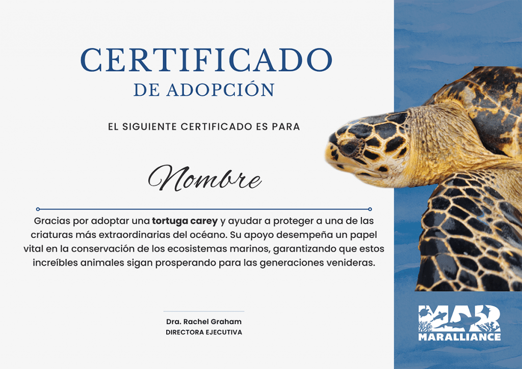Si bien apreciamos enormemente las donaciones de empresas a través de nuestro programa de adopción de animales, dichas contribuciones no establecen una asociación oficial con MarAlliance ni otorgan permiso para usar nuestro logo. Si deseas explorar oportunidades de patrocinio, no dudes en ponerte en contacto con nosotros para revisar nuestros paquetes de patrocinio.