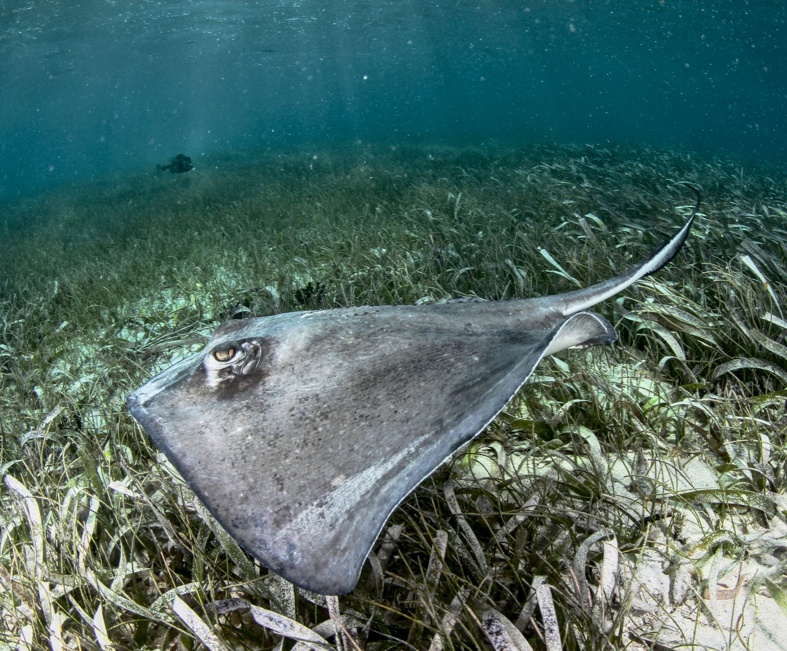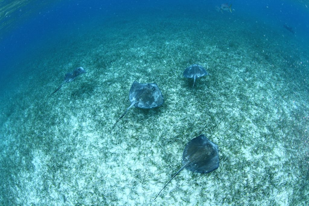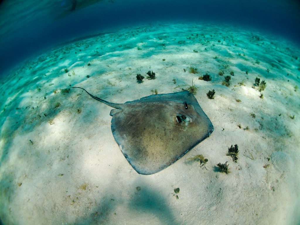 La raya austral, una especie de raya con forma de diamante que vive en el fondo, es común en aguas costeras templadas y tropicales poco profundas del océano Atlántico. Se entierra en la arena y las praderas marinas para desenterrar sus presas, removiendo a su vez los sedimentos y otros animales pequeños. Esta «bioturbación» no sólo libera presas para otras especies -las rayas australes se alimentan a menudo acompañadas de pequeños peces como los jureles-, sino que también crea microhábitats para pequeños invertebrados y oxigena los sedimentos del fondo marino. Debido a sus importantes funciones, que a menudo se pasan por alto, las rayas bentónicas, como las rayas australes, suelen denominarse «ingenieras del ecosistema».