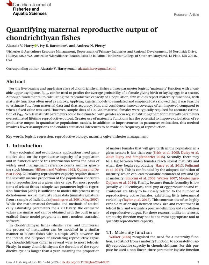 For the live-bearing and egg-laying class of chondrichthyan fishes a three parameter logistic ‘maternity’ function with a variable upper asymptote, PMax, can be used to predict the average probability of a female giving birth or laying eggs in a season. Although fundamental to calculating the reproductive capacity of a population, few studies report maternity functions, with maturity functions often used as a proxy. Applying logistic models to simulated and empirical data showed that it was feasible to estimate PMax from maternal data and that accuracy, bias, and confidence interval coverage often improved compared to when a fixed value was used. However, sample sizes of 100–200 maternal females were typically required for accurate estimation of PMax.While maturity parameters could be estimated with greater accuracy, substituting them for maternity parameters overestimated lifetime reproductive output. Greater use of maternity functions has the potential to improve calculation of reproductive output in quantitative populations models. In addition to improvements in parameter estimation, this method involves fewer assumptions and enables statistical inferences to be made on frequency of reproduction.