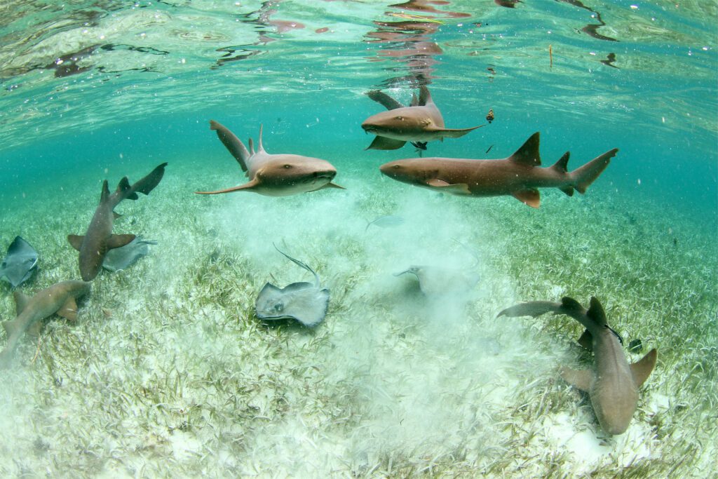 Although nurse sharks have been fully protected from fishing in Belize since 2012, their long generation times make them slow to recover from overfishing – studies have estimated that nurse sharks do not reach sexual maturity until 25 years of age! Our research has found that there are roughly 3,800 to 14,400 nurse sharks throughout Belize. The highest densities of nurse sharks were found at the atolls furthest away from the mainland, where fishing pressures are lower.