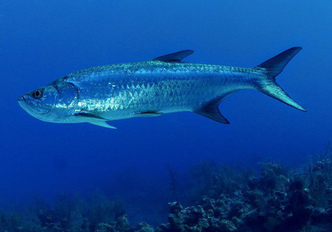 Widely distributed across the Atlantic Ocean, tarpon primarily inhabit shallow tropical and subtropical seas including coastal waters, bays, mangroves, estuaries, coral reefs, and lagoons. Tarpon have an amazing life cycle, likely spawning more than a hundred of miles offshore, where eggs fertilized in open water. They hatch as small, thin, clear larvae, which are similar in appearance to marine eel larvae. The larval tarpon then swim inshore, entering nursery grounds such as bays and estuaries at night, where they settle and grow into juvenile tarpon that look like miniature adults. Adult tarpon mostly feed nocturnally, swallowing their prey whole with their huge mouths. Tagging studies have indicated that some populations are migratory, while others are more resident, and still others show a mix of behaviors, with some adults undertaking long coastal migrations, while others are more resident to discrete locations.
